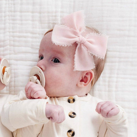 Scalloped Organza Bow, Nylon Headband - Light Pink