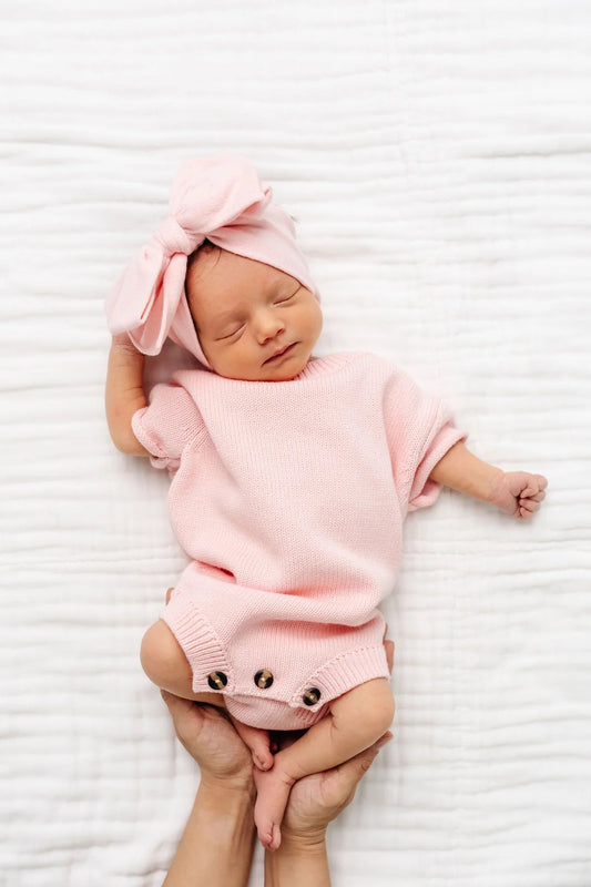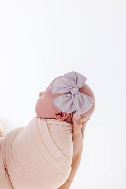 Wide Nylon Headband w/ Scalloped Edge Bow: 5.5" - Powder Pink