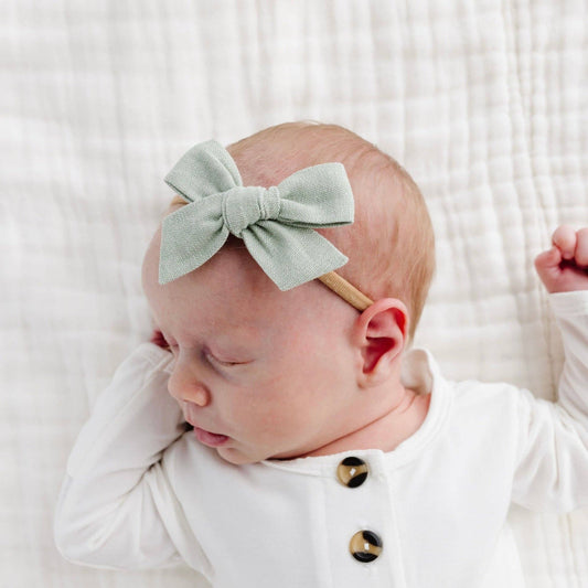 Wide Nylon Headband w/ Scalloped Edge Bow: 5.5" - Antique White