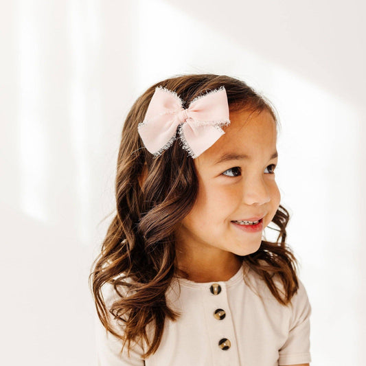 3/4" Hard Headband W/ 6.5" Opaque Satin Bow: Powder Pink