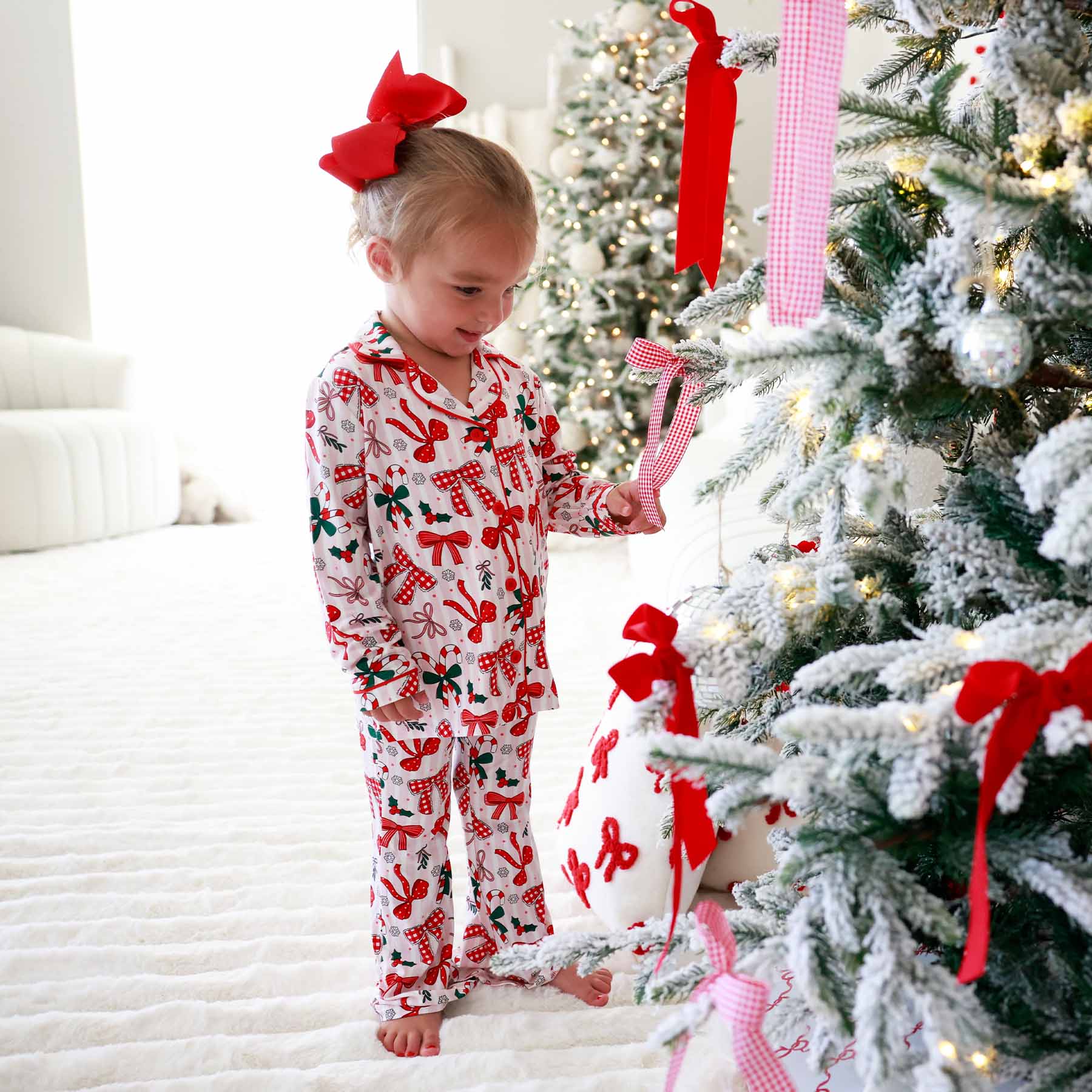 Festive, fun, and made to match, our Bow What Fun Girls’ Two-Piece Lounge Set is the perfect holiday outfit for your little girl.