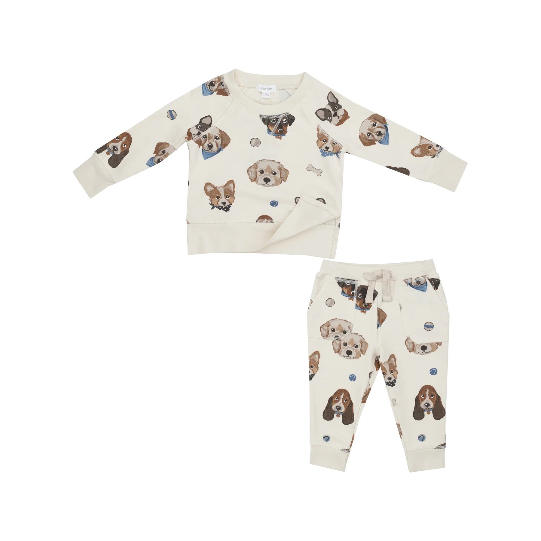 French Terry Vintage Puppy Faces - Raglan Sweatshirt And Jogger Set