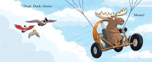 Hardcover | JUVENILE FICTION/Humorous Stories | Join Duck, Duck, and Goose as they soar through the skies, leaving the cold weather behind on their annual migration south. Will Goose and friends catch a ride on a caboose? Will Duck’s truck get stuck in the muck? And why is there a moose in this book? Wait, where did Moose go? John Hare, the acclaimed author-artist of A Mouthful of Minnows, has crafted a hilarious picture book full of rhyming wordplay, exuberant illustrations, and friendship—and that features a sly nod to seasonal migration. Duck, Duck, Goose! is an innovative, playful, and unpredictable picture book that begs to be read again and again, making it a wonderful choice for emergent readers as well as family and storytime sharing.