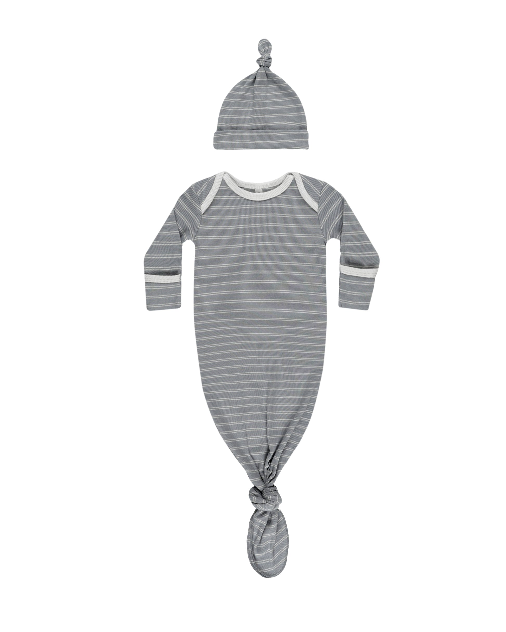 Knotted Baby Gown + Hat Set - Blue Pinstripe