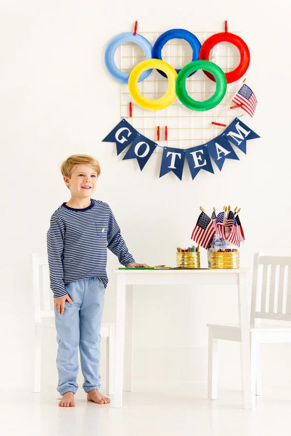 Long Sleeve Carter Crewneck - Barrington Blue & Nantucket Navy Stripe with Worth Avenue White Stork