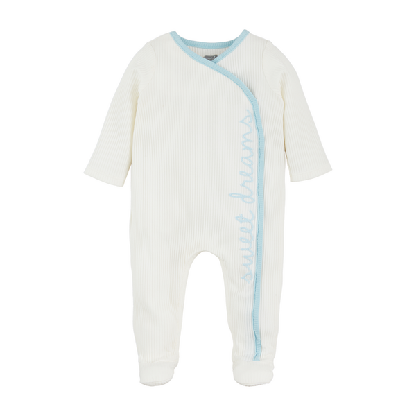 - Chainstitch Blue Baby Sleeper made from soft cotton rib fabric