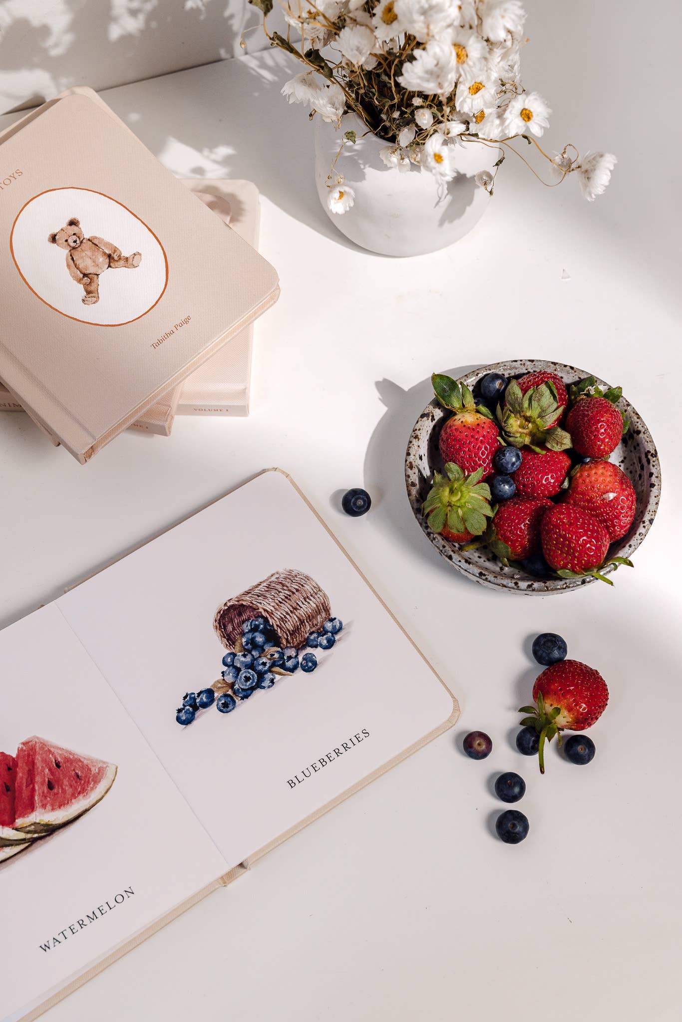Our Little Library includes five board books that feature charming images and foundational first words that will help you build your child's vocabulary. The durable materials and small book size also make them perfect baby books for your baby's little hands.