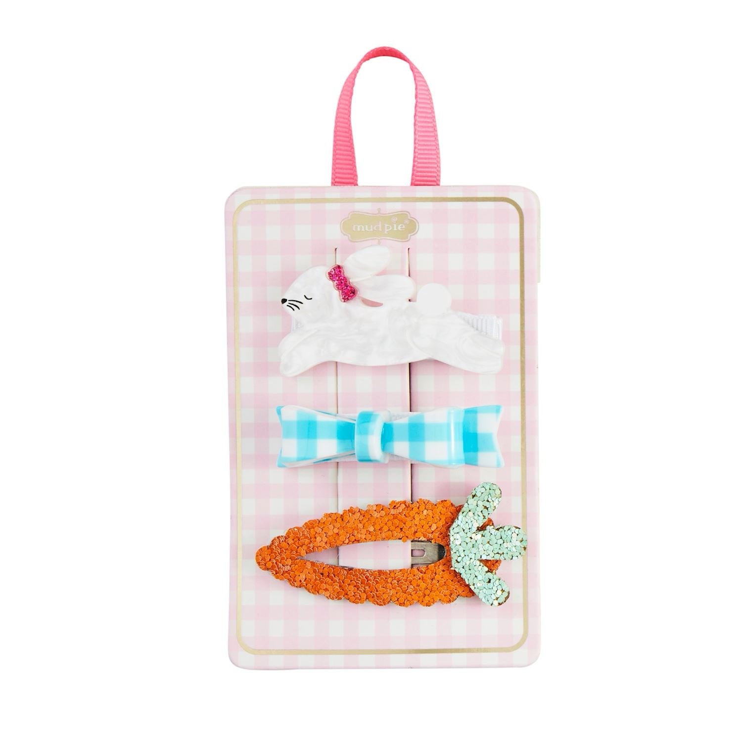 3-piece set. Glitter acrylic or glitter fabric topped alligator hair clips