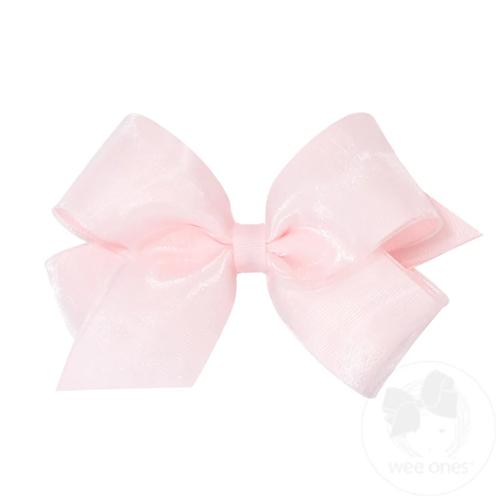 Be sure to grab our best-selling bow for girls in our popular medium-size! Pretty organza overlays our classic grosgrain for a com-bow you'll be sure to love. This bow is sure to stay in her hair all day with our patented WeeStay™ no-slip hair clip.
