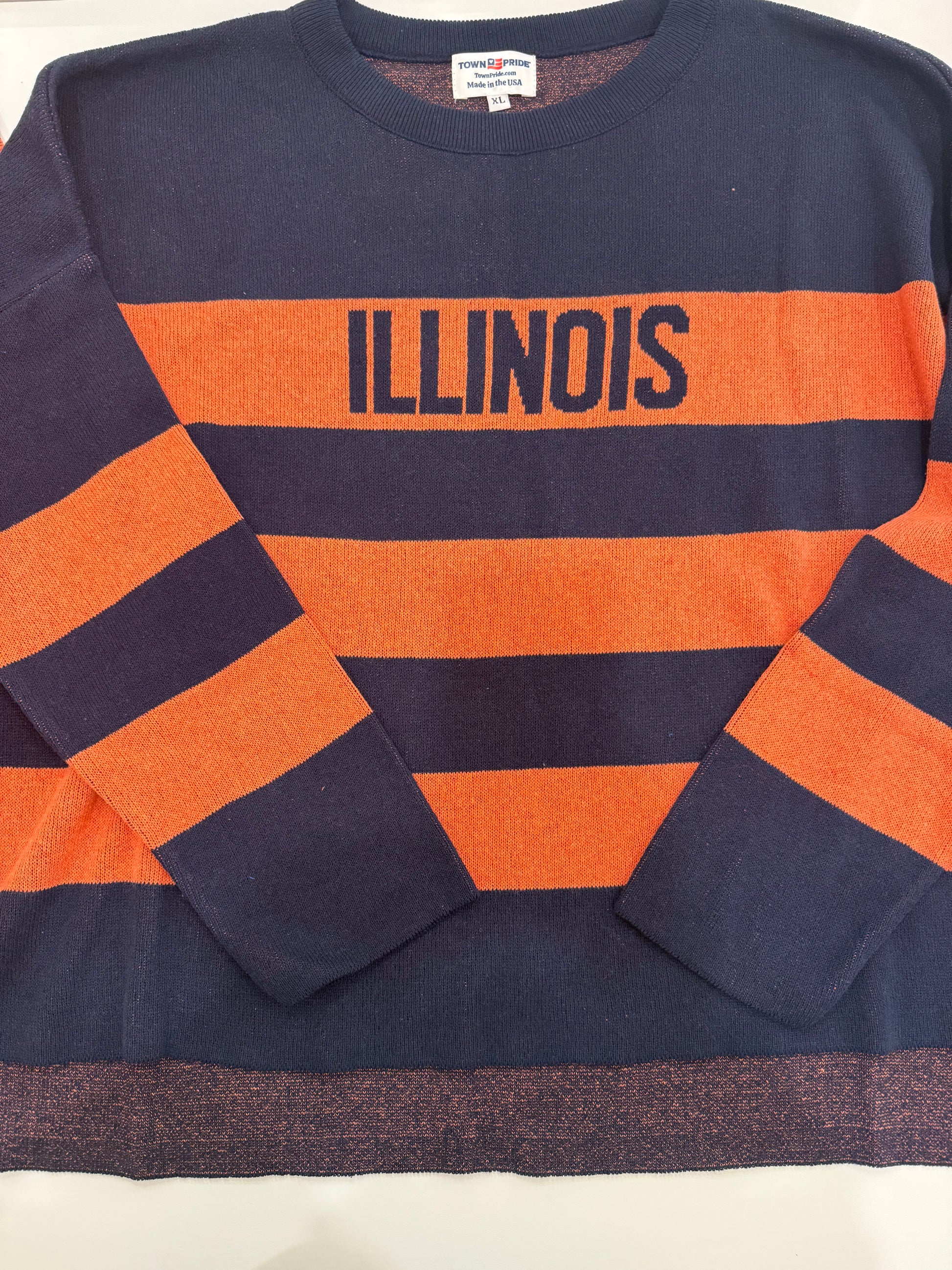 Slightly oversized/ boxy fit with some added length to the back of the sweater.